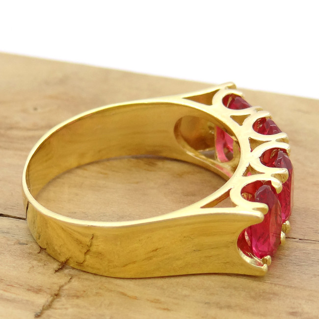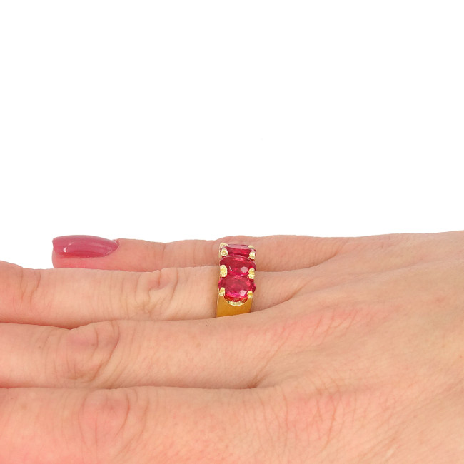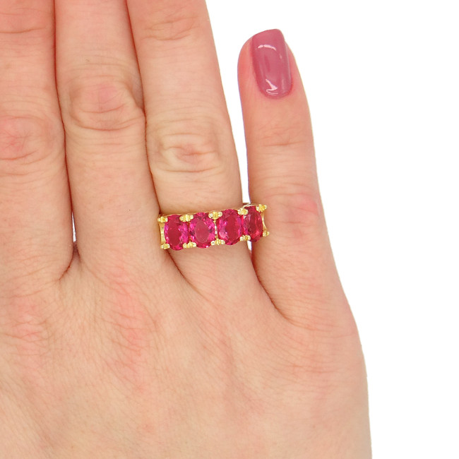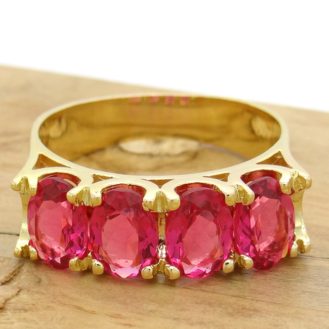 Meia Aliança com Cristais de Rubelita, em Prata 925 Folheado a Ouro