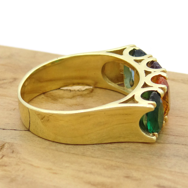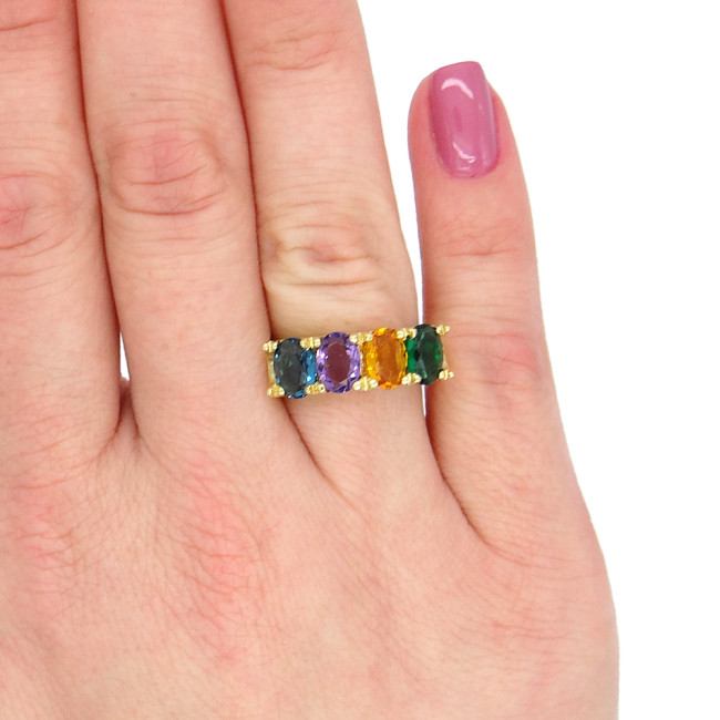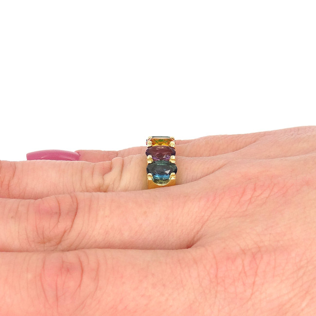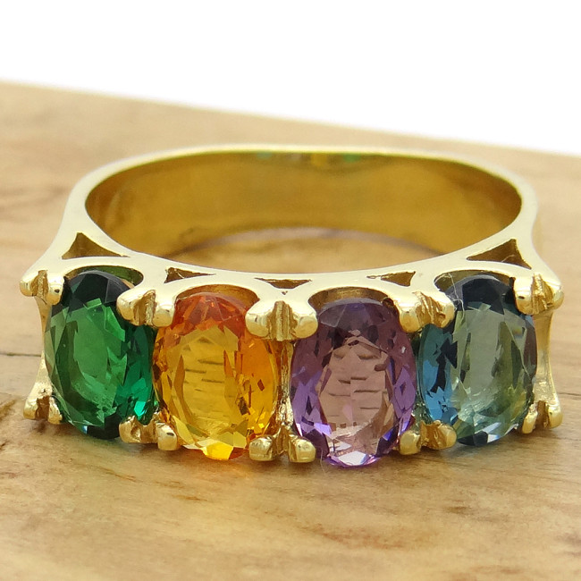 Meia Aliança com Mix de Gemas Brasileiras, em Prata 925 Folheado a Ouro