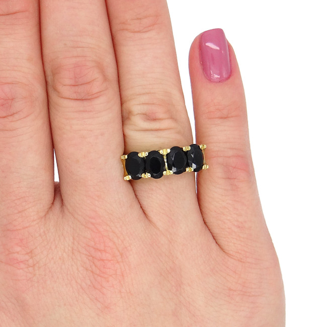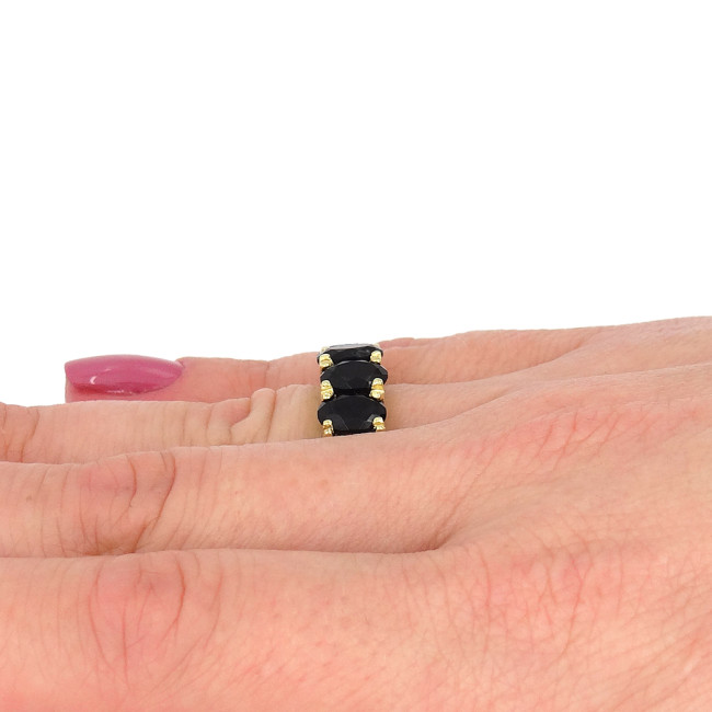Meia Aliança com Ônix, em Prata 925 Folheado a Ouro