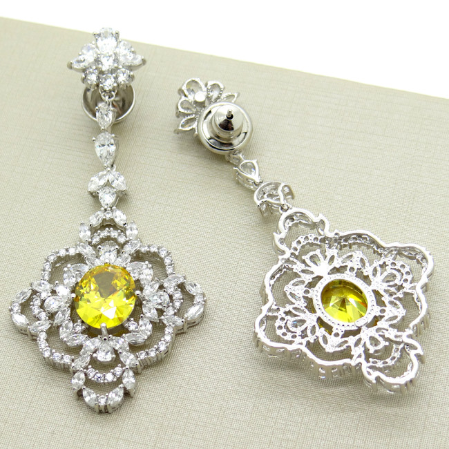 Tags: Banho, Par, Ródio, Com, Brincos, Cristais, Zircônia, Citrino, Prata, 925,