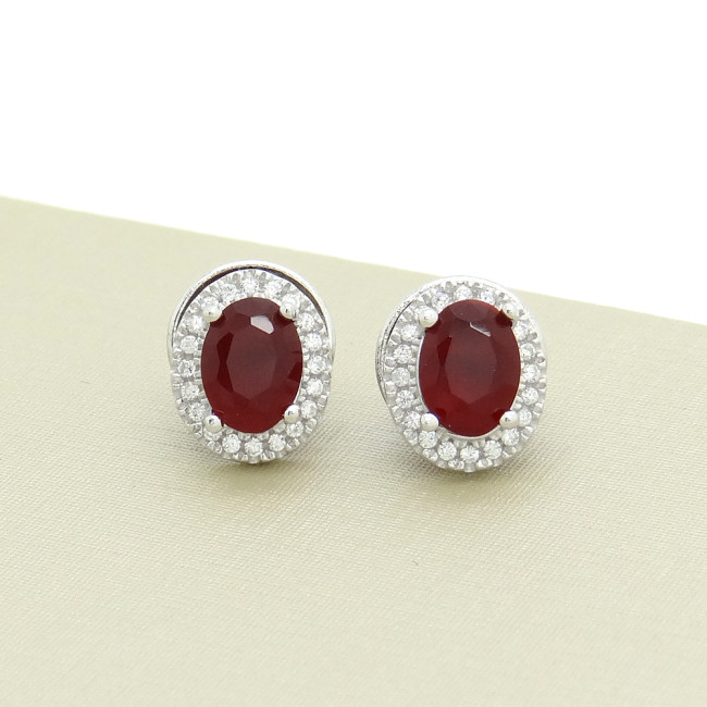 Par de Brincos com Cristais Rubi e Zircônias, em Prata 925 com Banho de Ródio