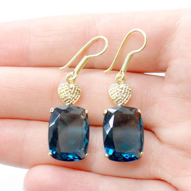 Par de Brincos com Diamante e Cristal Topázio Escuro, em Prata 925 Folheado a Ouro