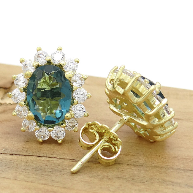 Tags: Folheados, Par, Brincos, Amarelo, Kilates, Ouro, Folheado, 925, Prata, Zircônias, Azul, Quartzo, Com, Princess,