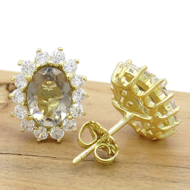 Tags: Kilates, Amarelo, Ouro, Folheado, 925, Prata, Zircônias, Fumê, Quartzo, Com, Princess, Brincos, Par, Folheados,