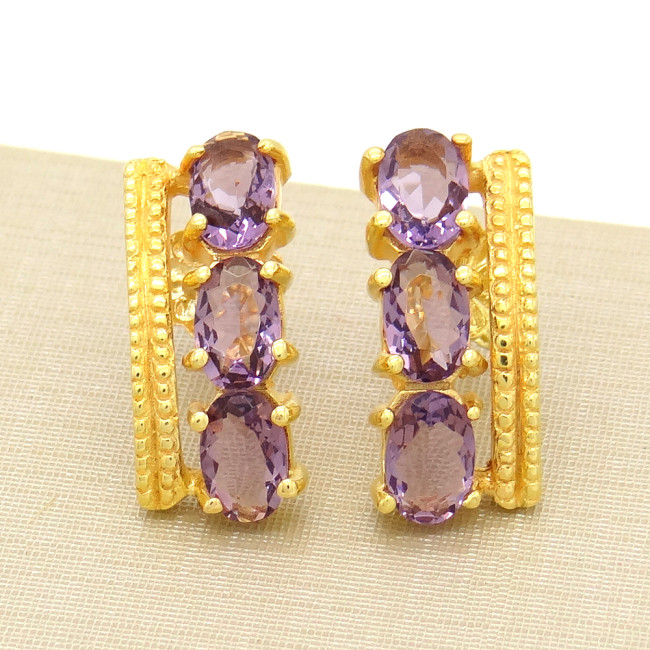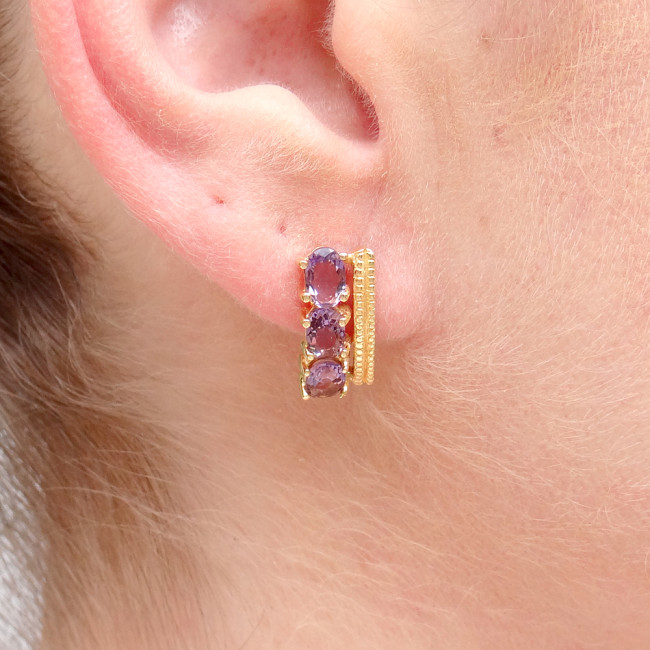Parde Brincos com Ametista, em Prata 925 Folheado a Ouro