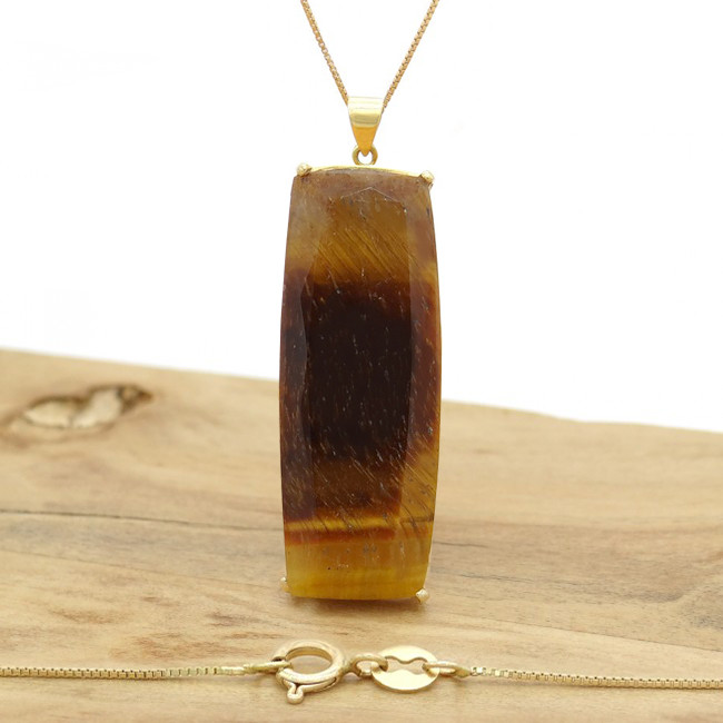 Pingente Baguete com Olho de Tigre, Folheado a Ouro 18 Kilates, em Prata 925
