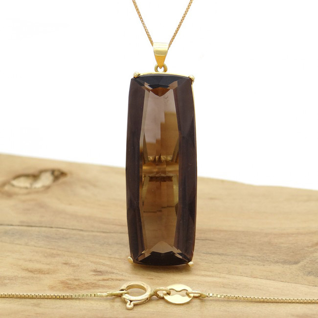 Pingente Baguete com Quartzo Fumê, Folheado a Ouro 18 Kilates, em Prata 925