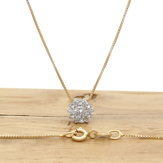 Pingente Chuveiro com 7 Diamantes, Folheado a Ouro Amarelo 18 Kilates, em Prata 925