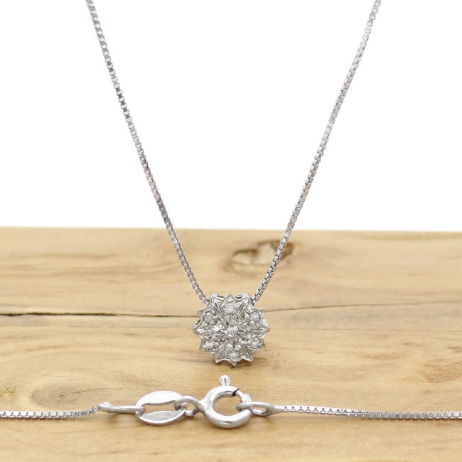 Pingente Chuveiro com 7 Diamantes, Folheado a Ouro Branco 18 Kilates, em Prata 925