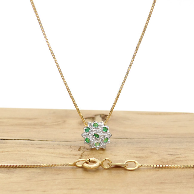 Pingente Chuveiro com 7 Esmeraldas, Folheado a Ouro 18 Kilates, em Prata 925