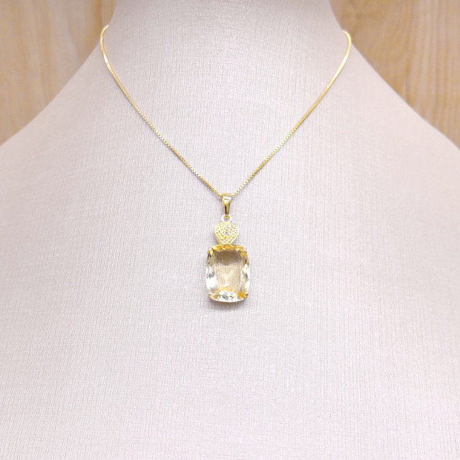 Pingente com Diamante e Cristal Green Gold, em Prata 925 Folheado a Ouro