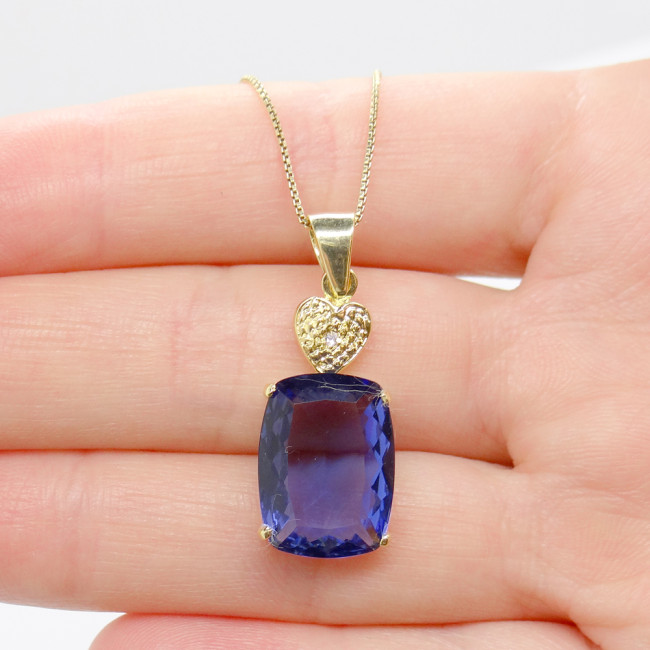 Pingente com Diamante e Cristal Tanzanita, em Prata 925 Folheado a Ouro