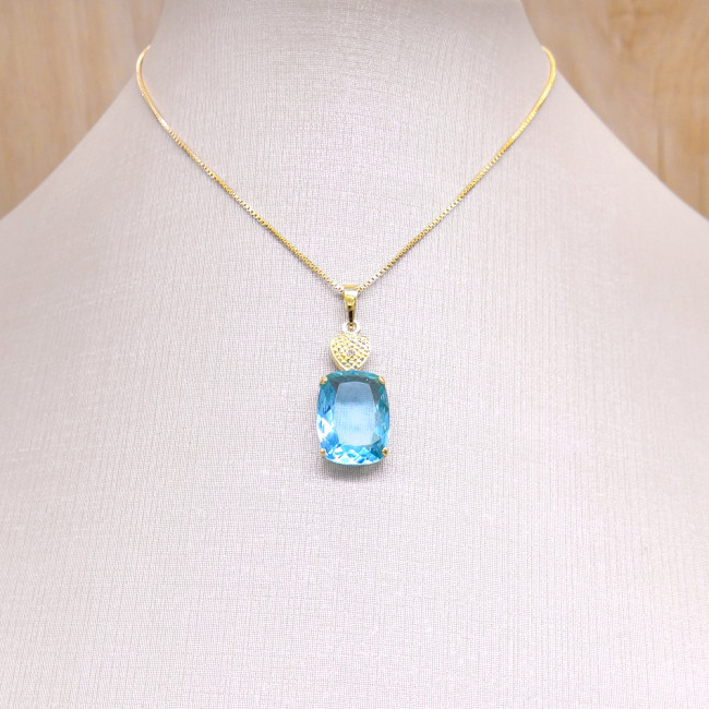 Pingente com Diamante e Cristal Topázio Claro, em Prata 925 Folheado a Ouro
