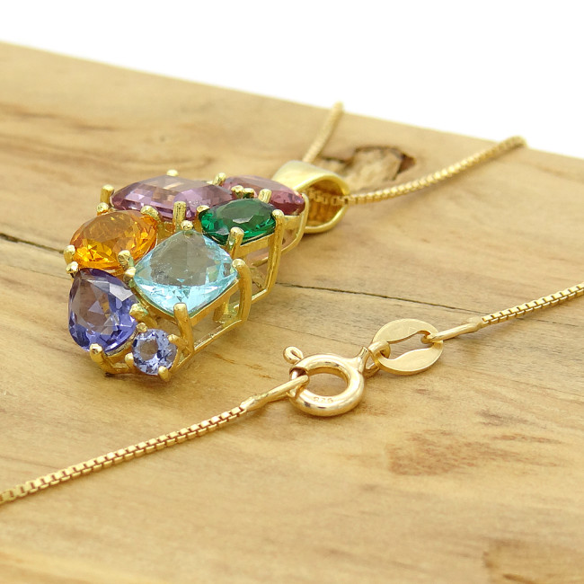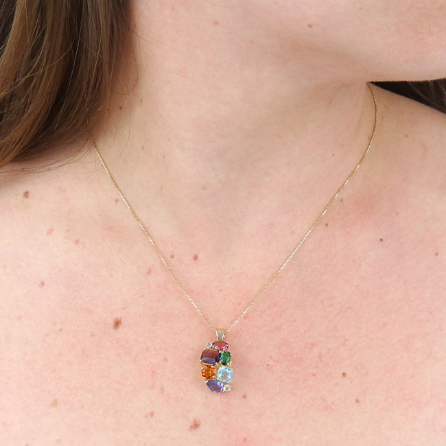Pingente com Mix de Gemas Brasileiras, em Prata 925 Folheado a Ouro