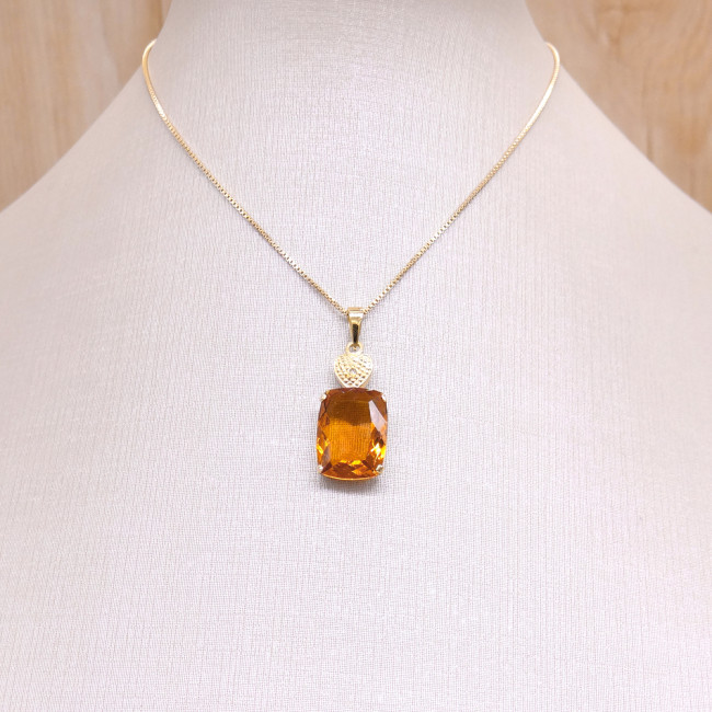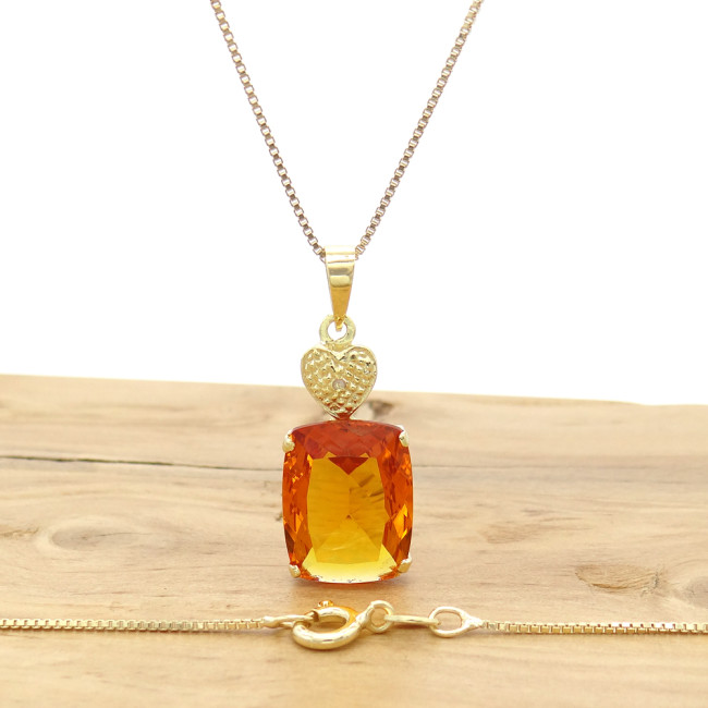 Pingente Retangular com Citrino e Diamante, em Prata 925 Folheado a Ouro